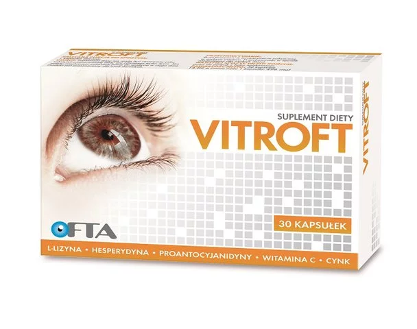 Vitroft jest bogaty w antyoksydanty, dobroczynną witaminę C oraz cynk, który pomaga w prawidłowym widzeniu. Jego skład to kompozycja składników aktywnych: L-lizyny, hesperydyny.